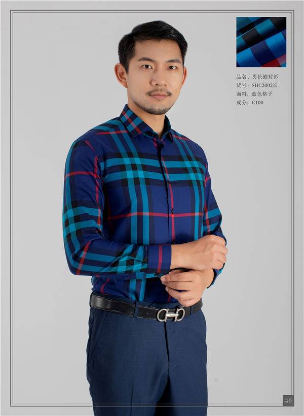 蓝色男正领衬衫