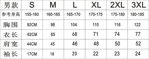 尺码:不分男女,S到XXXL的6个码