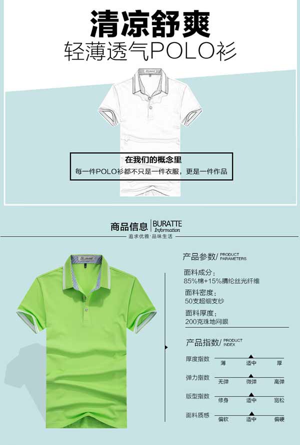 面料厚度:200克珠地网眼