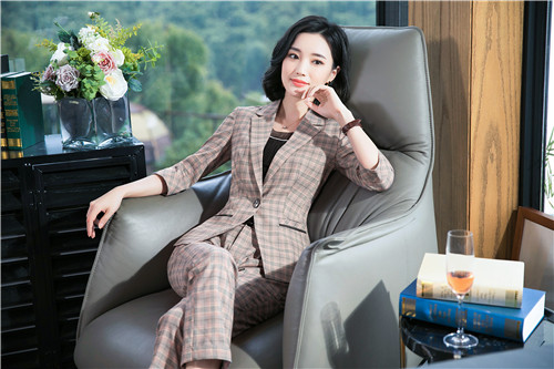 粉格子西装