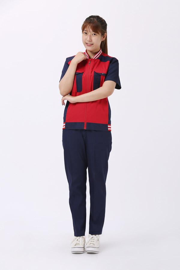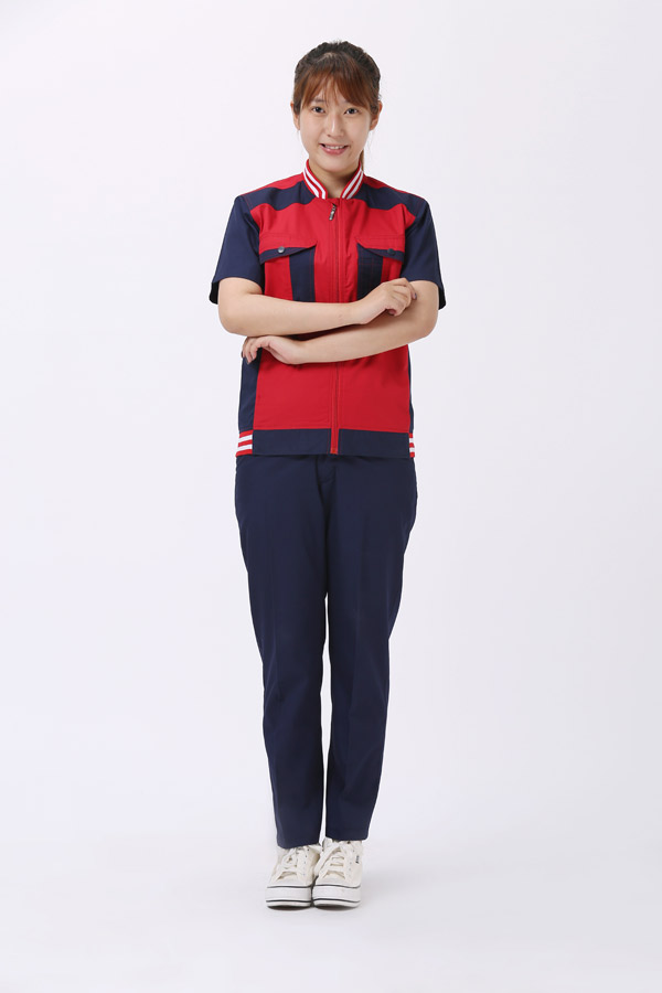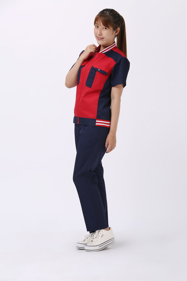 夏季工作服装必需满足美化人体的功用;颜色分配是非常重要的。服装必需满足人体运动性的功用,工作服普通以宽松为主。