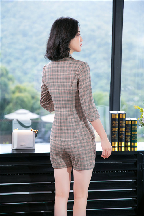 粉格子西装